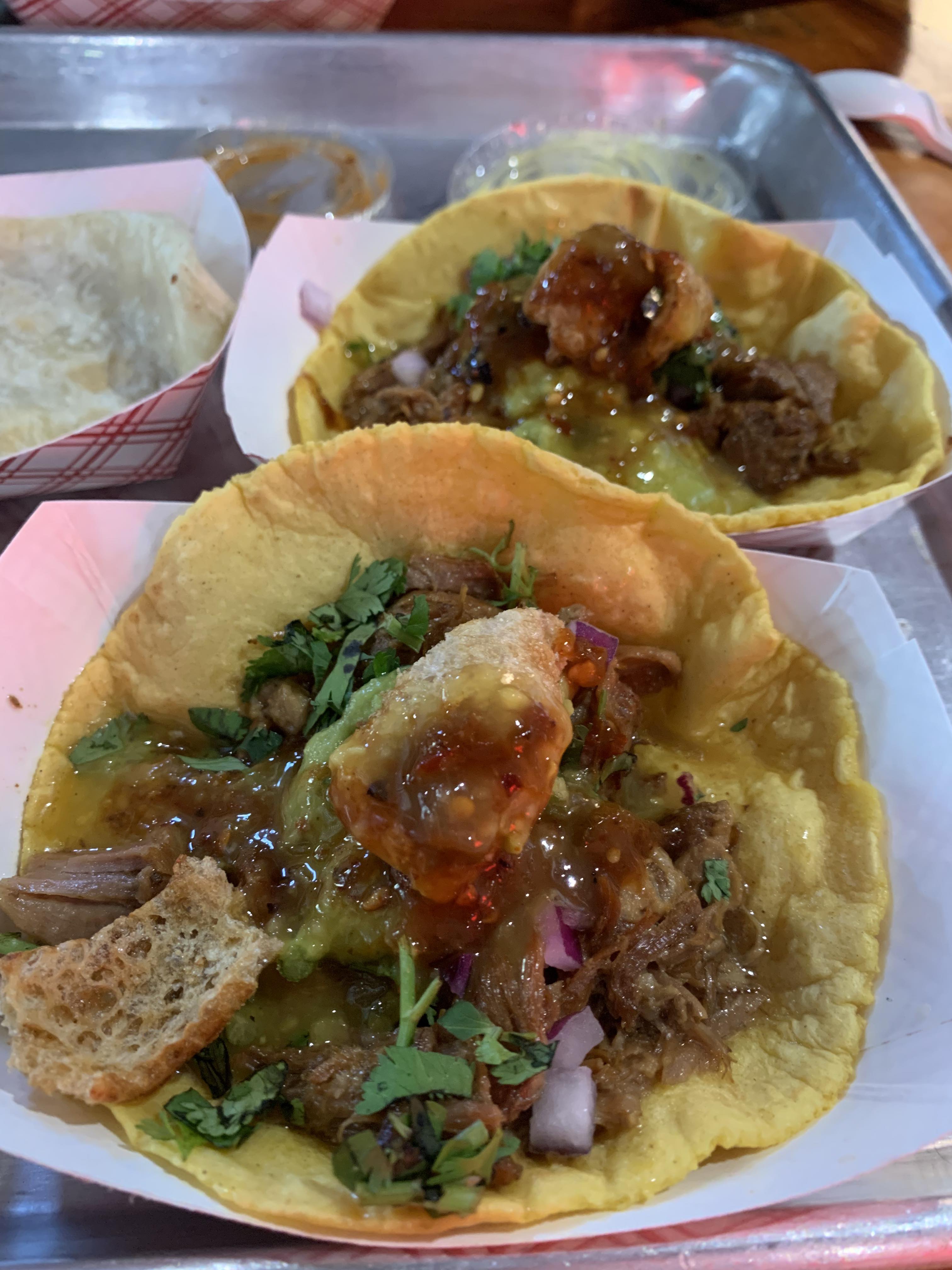 I had taken this day off of work, and drove down the hour and change towards San Diego ahead of the game. The area around Petco Park was a breath of fresh air after navigating through the traffic minefield that was the trip to Dodger Stadium, with the park being well-integrated into the city and lots of great-looking restaurants around the stadium. We had settled on a place just beyond the left field wall called City Tacos, which remain some of the best tacos I've had to date. I'm not usually a taco person, as I tend to go for bulkier meals such as burritos or simply a plate of food, but I found myself enjoying these a ton. The bulk of the storefronts in the area were Padres-themed or had something going on for the day of the game, which made coming here feel truly special.