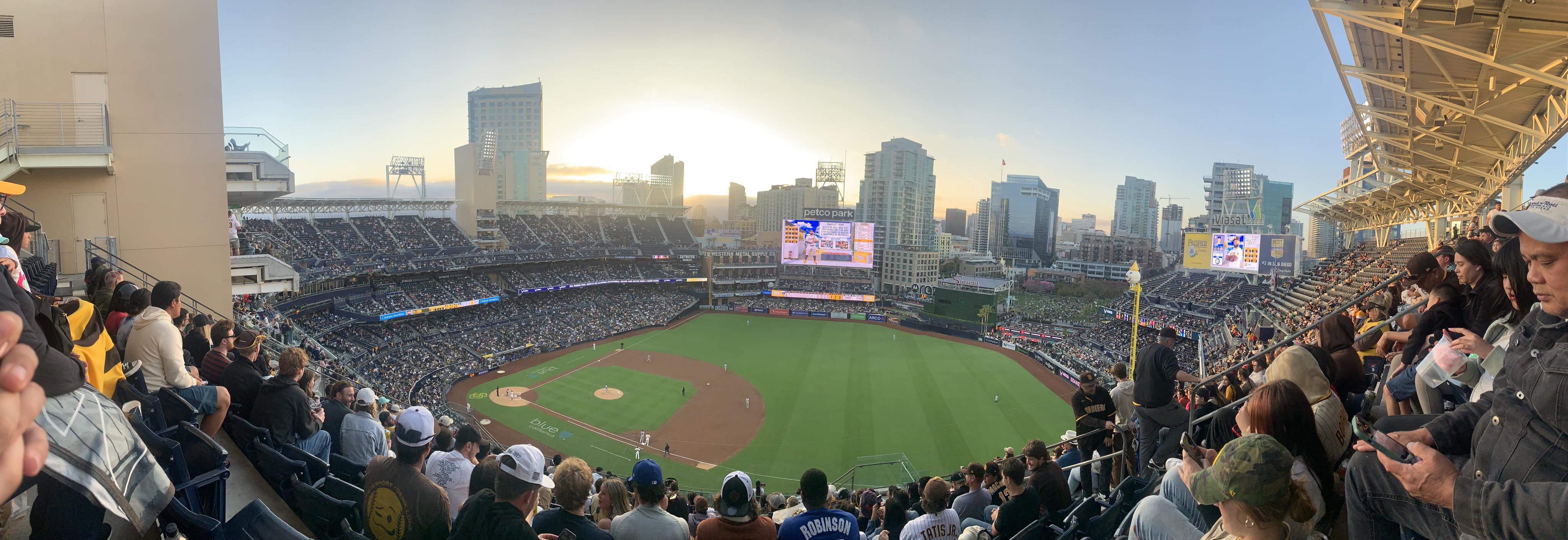 The actual game between the mediocre Padres and a worse Royals team was pretty forgettable, and I find myself remembering the experience of the stadium more than the actual on-field product. One of my favorite pitchers and test subjects of my mathematical model, Seth Lugo, took the start for the Padres. He cruised to a 1-2-3 first inning, and then managed to give up five runs in the second inning alone to a middling Royals offense and got pulled from the game. Oops! The Padres got on base a fair bit throughout the game, with the Juan Soto I was excited to see notch two hits, but were unfortunately never able to fully catch back up to the 5-run inning the Royals put up (including going 0 for 5 with runners in scoring position). The most memorable part of the game were seeing the dogs the broadcast team would occasionally throw on the scoreboard -- perhaps a commentary on the 2023 Padres.